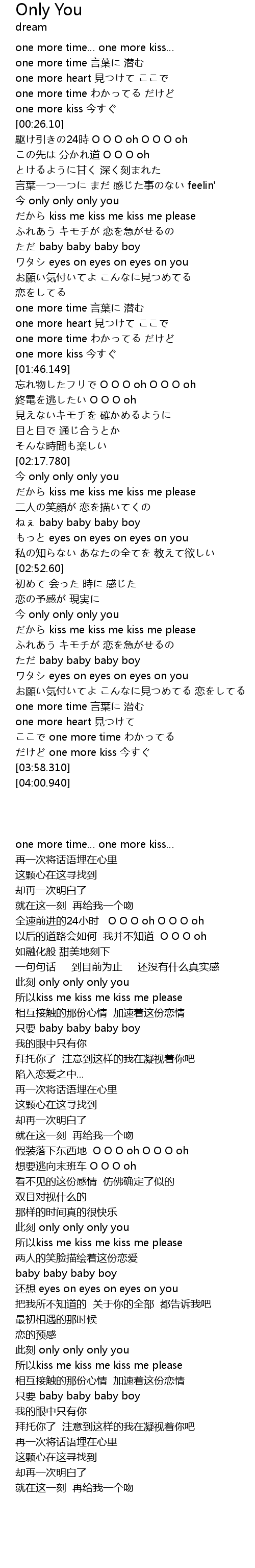| [00:22.570] | one more kiss jīn |