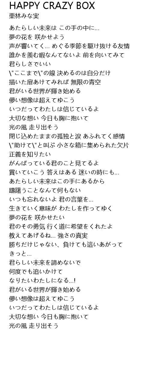 | Song | HAPPY CRAZY BOX |