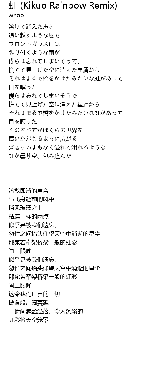 | Song | 虹 (Kikuo Rainbow Remix) |