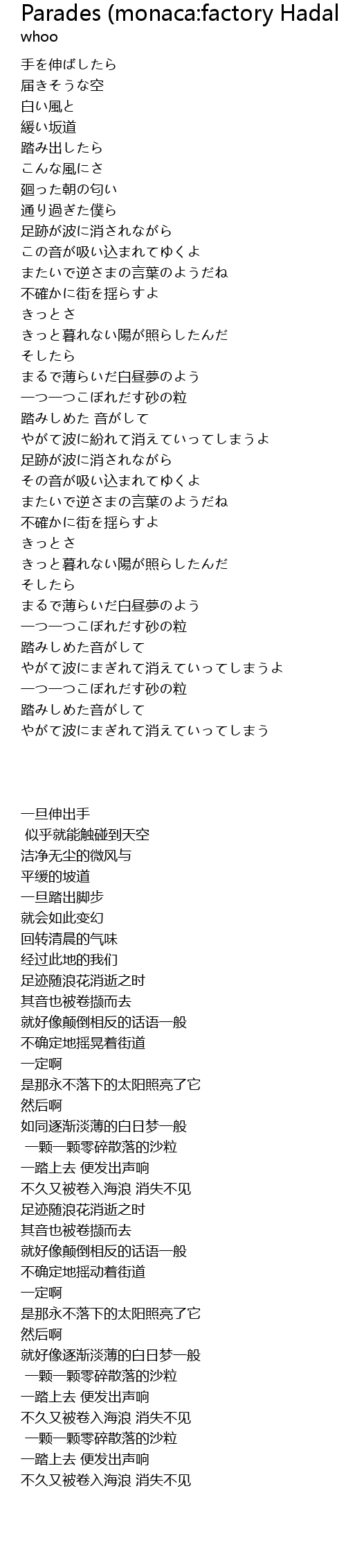 | [04:14.00] | やがて波にまぎれて消えていってしまう |
