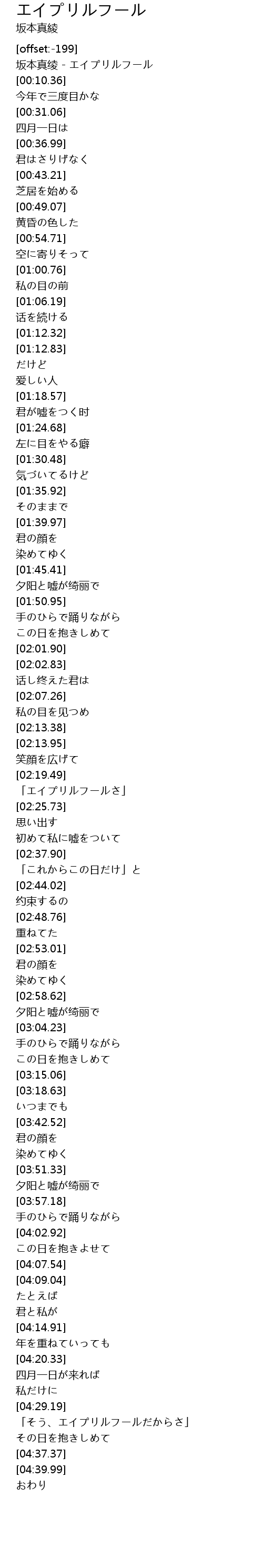 | [04:29.76] | 「そう、エイプリルフールだからさ」 |