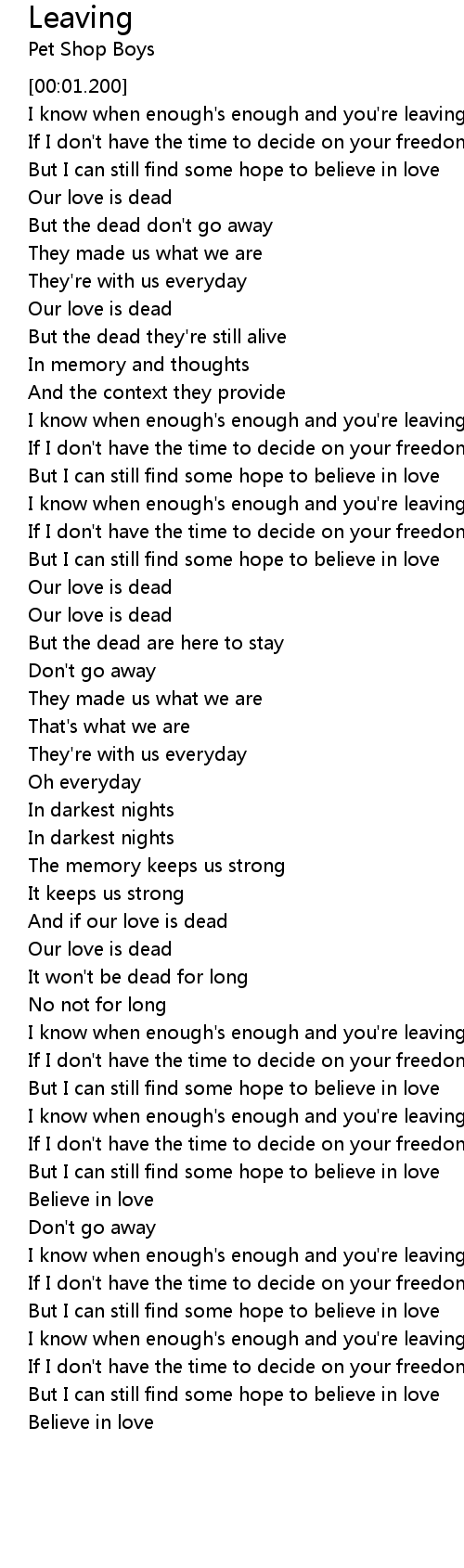 I know when enough's enough and you're leaving |