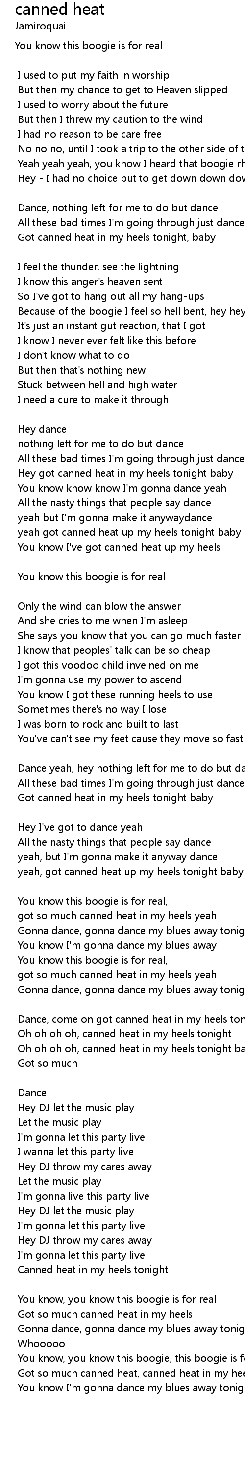 Oh oh oh oh, canned heat in my heels tonight baby |