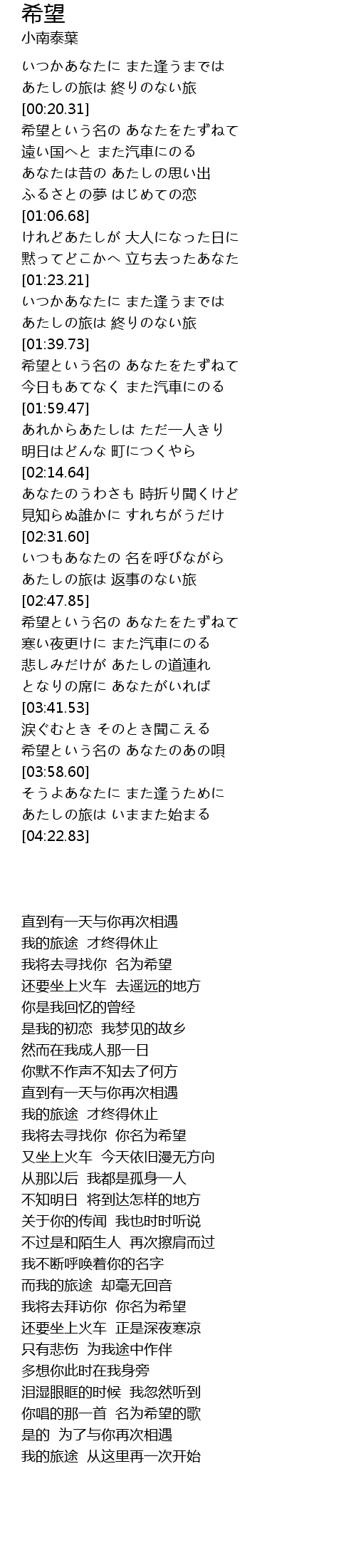 希望という名の あなたのあの唄 |
