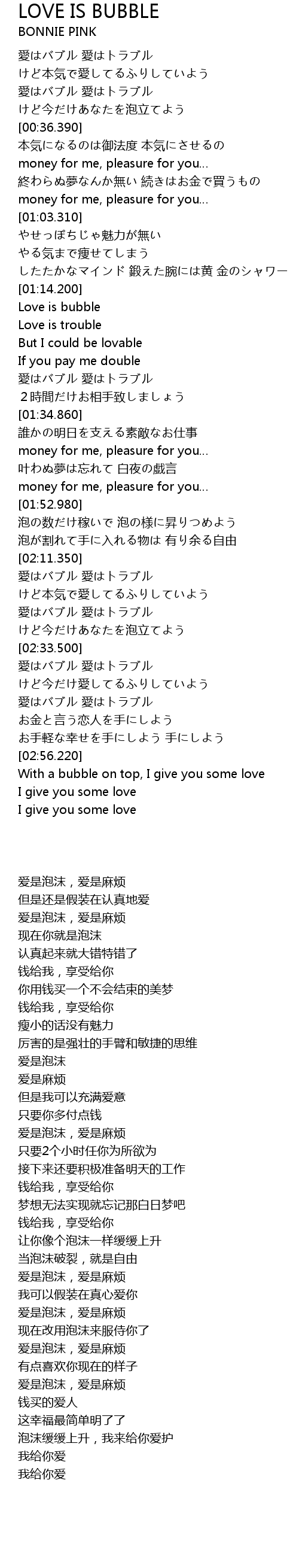 | [01:16.980] | Love is bubble |
