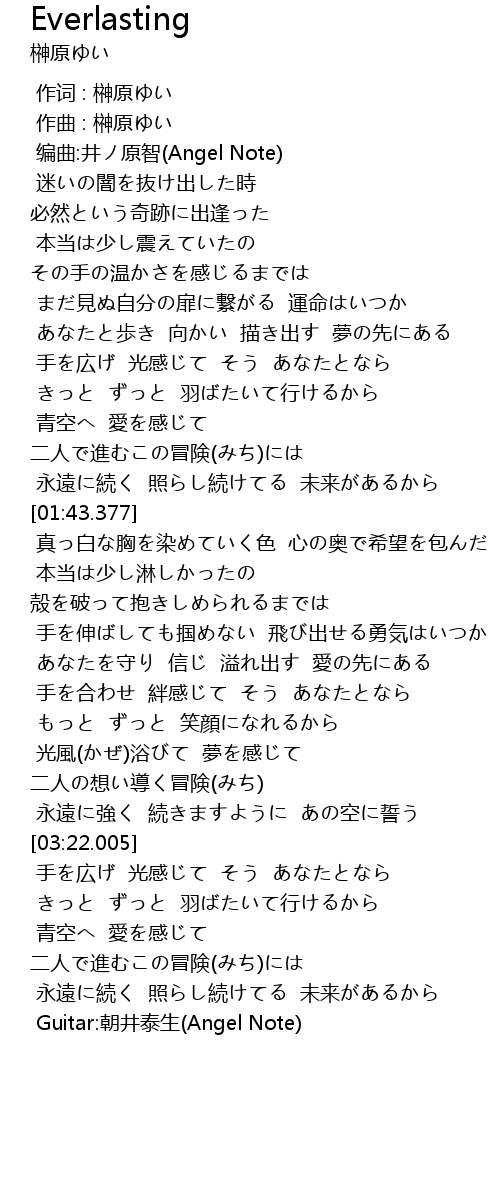 | [04:16.340] | Guitar:朝井泰生(Angel Note) |