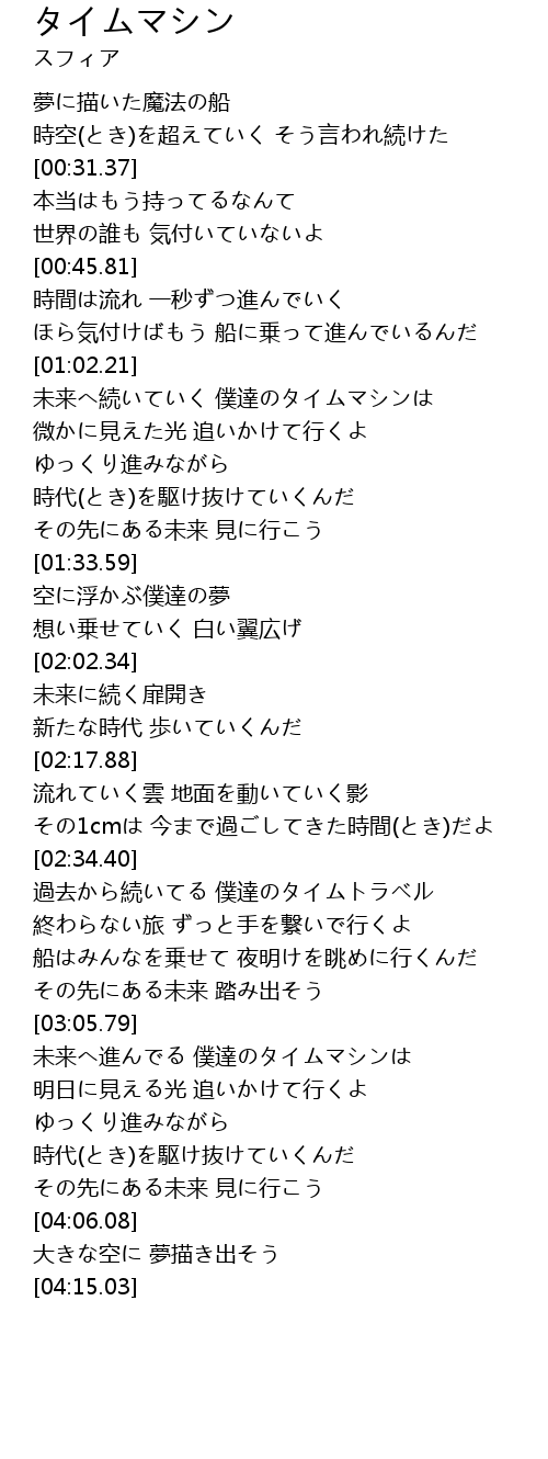 | [03:36.41] | 未来へ進んでる 僕達のタイムマシンは |