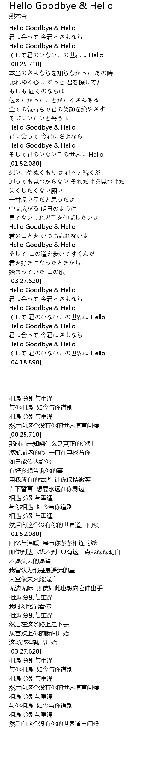 | [00:17.670] | そして君のいないこの世界に Hello |