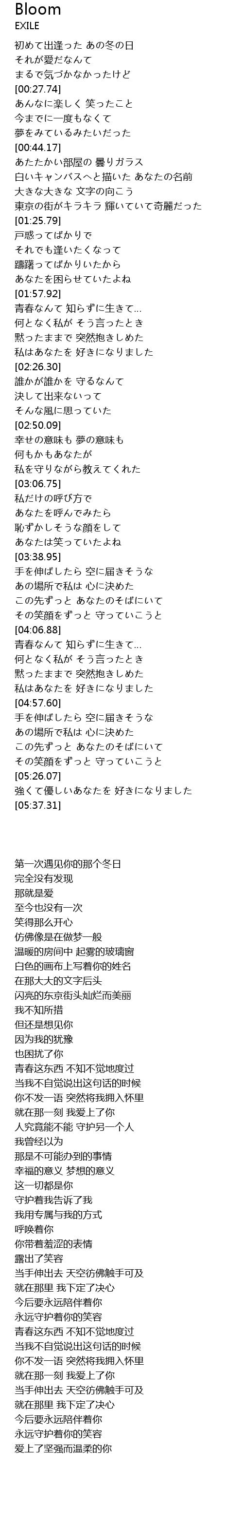 | [05:13.58] | この先ずっと あなたのそばにいて |