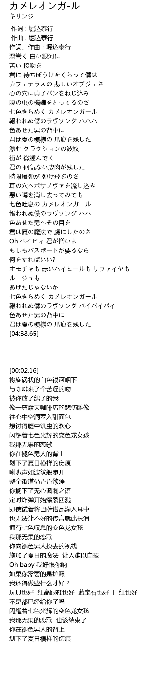 | [02:39.81] | 七色吐息の カメレオンガール |