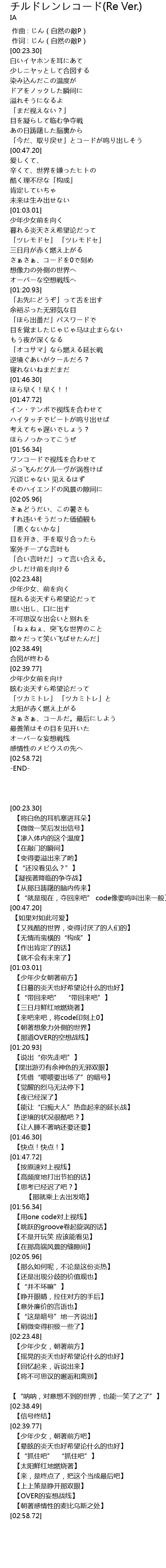 | [01:13.44] | さぁさぁ、コードを0で刻め |