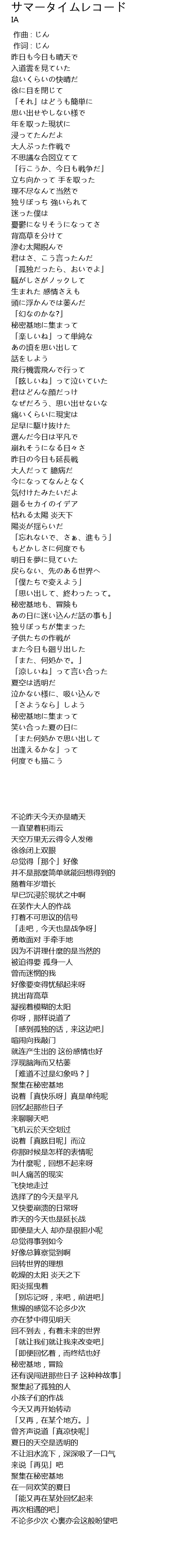 | [03:31.800] | 夏空は透明だ |