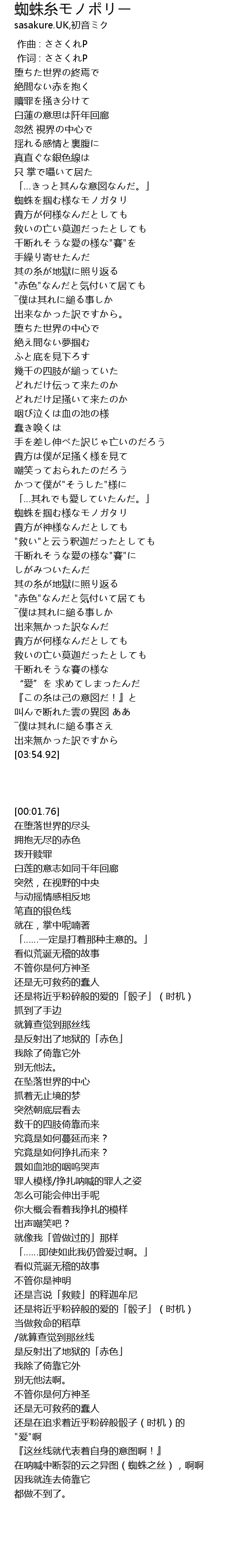 | [02:56.32] | 蜘蛛を掴む様なモノガタリ |