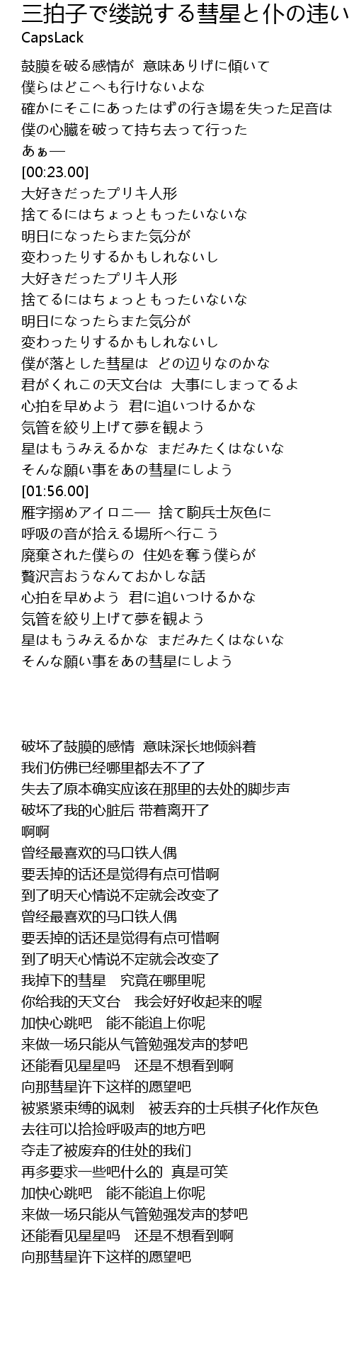 | Song | 三拍子で缕説する彗星と仆の违い |