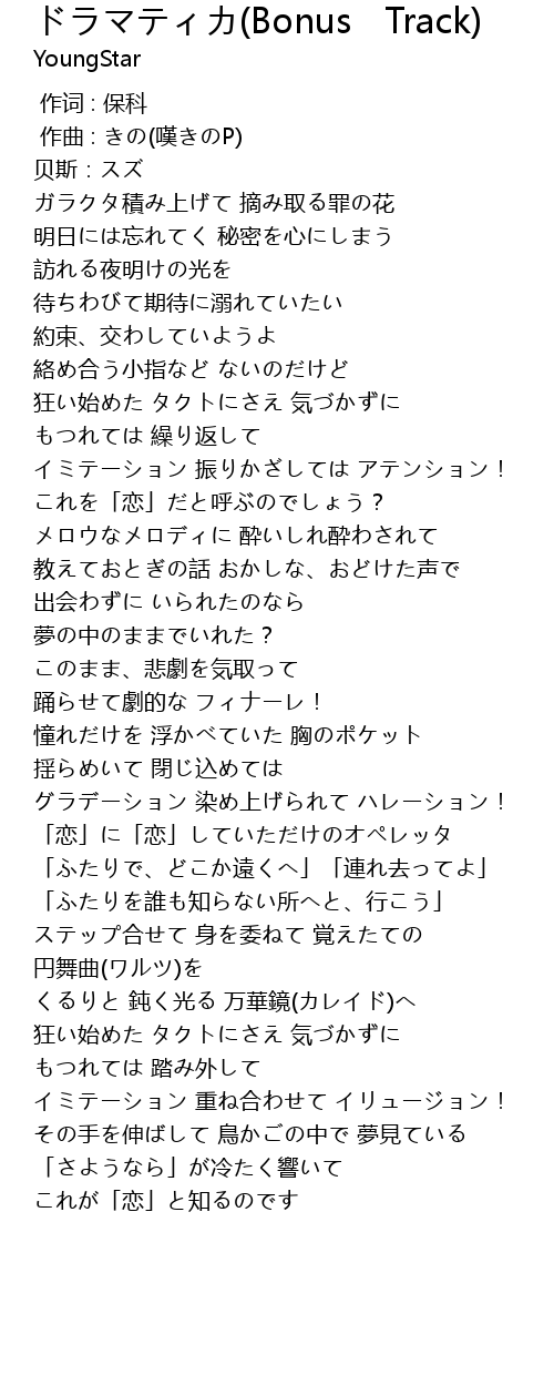 ドラマティカ(Bonus Track) Bonus  Track Lyrics