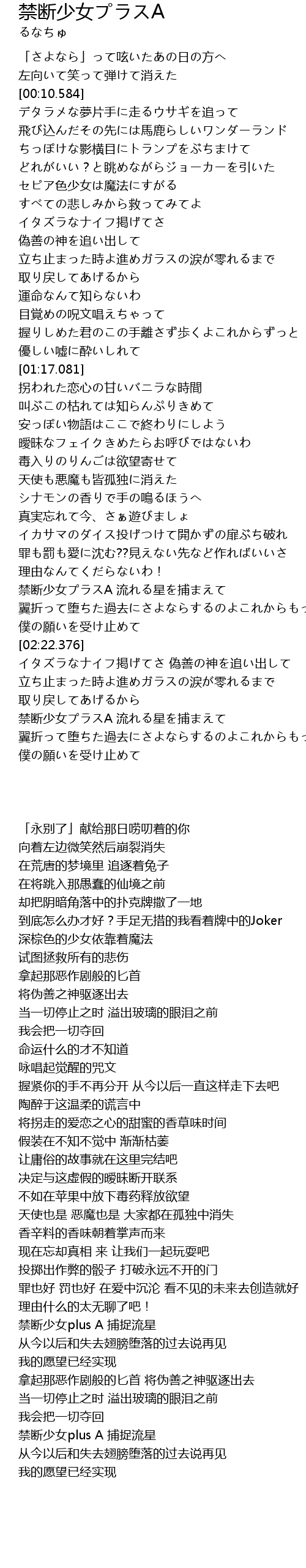 | [02:11.682] | 禁断少女プラスA 流れる星を捕まえて |