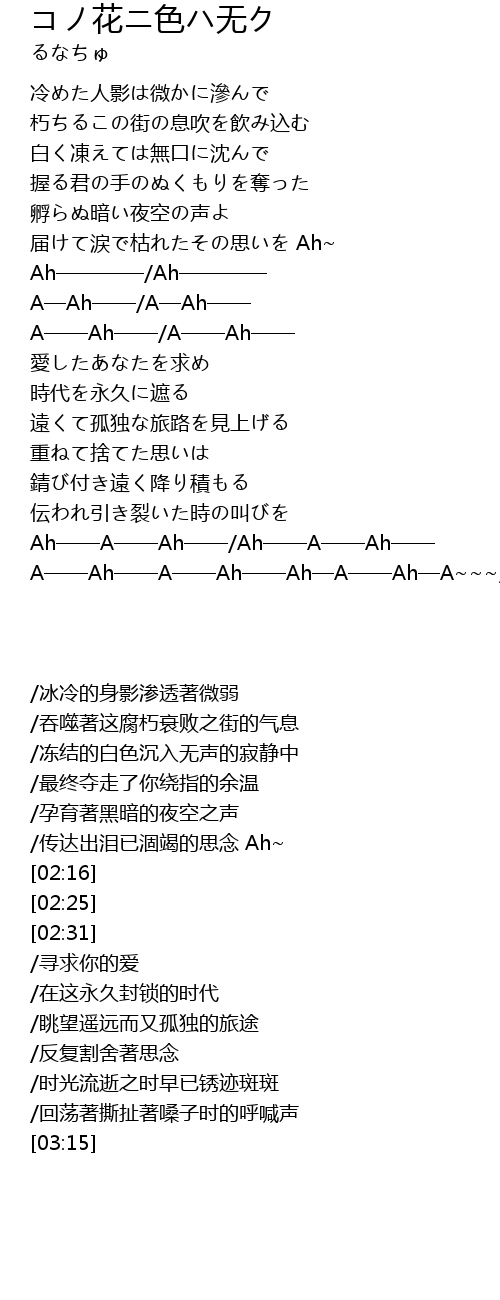 | [01:45] | 届けて涙で枯れたその思いを Ah~ |