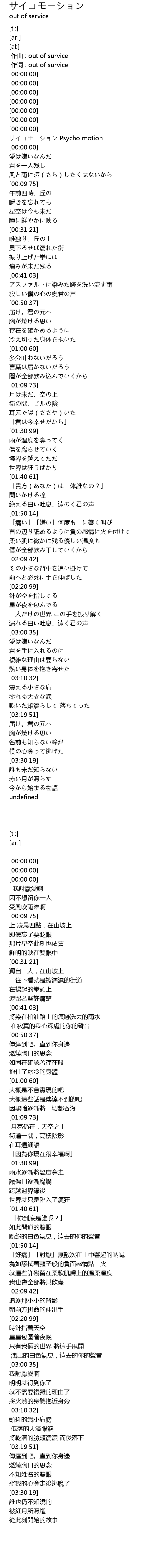 | [00:00.00] | zuo qu : out of survice |