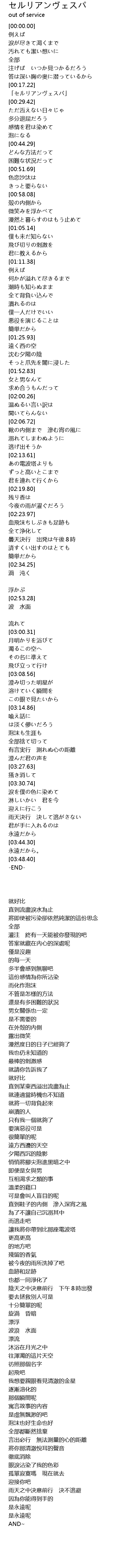| [00:20.86] | 「セルリアンヴェスパ」 |