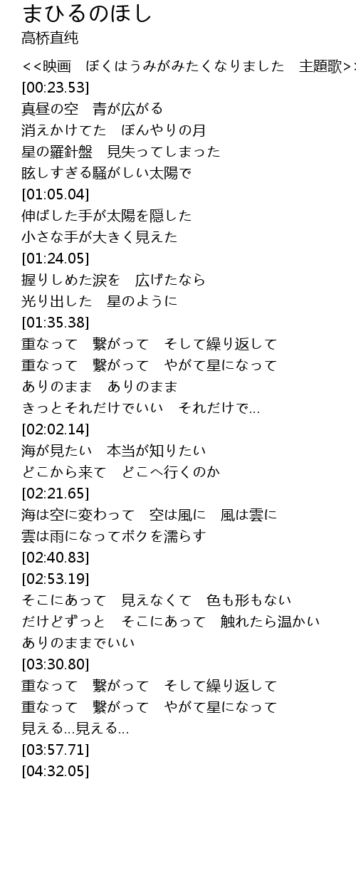 | [00:19.72] | <<映画 ぼくはうみがみたくなりました 主題歌>> |