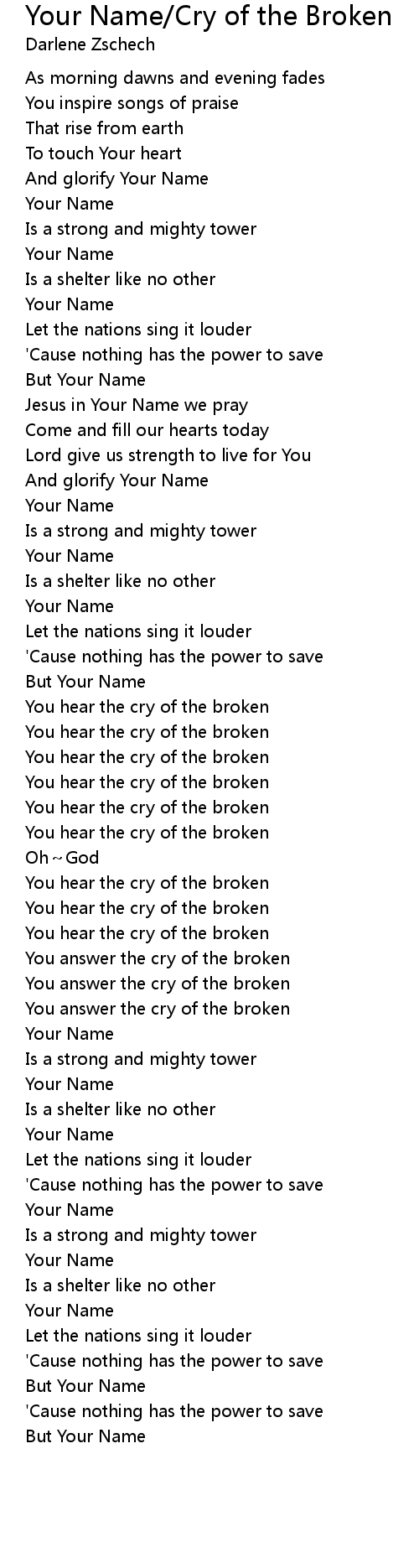 | [04:01.78] | You hear the cry of the broken |