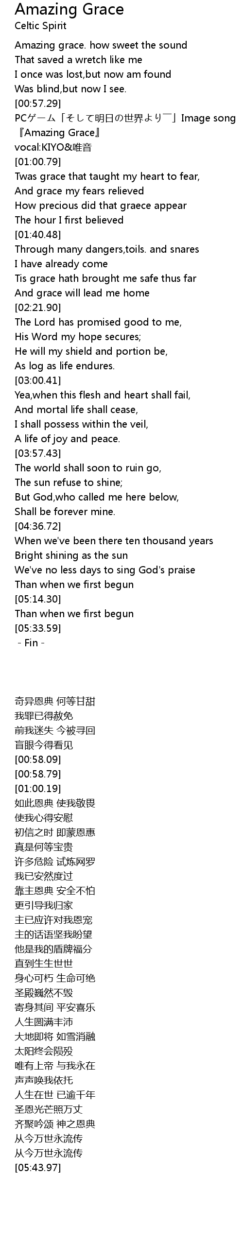 | [00:58.79] | 『Amazing Grace』 |