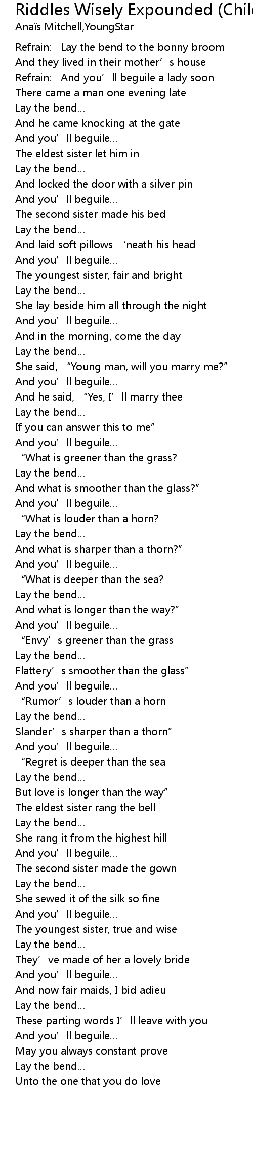 | Song | Riddles Wisely Expounded (Child 1) |