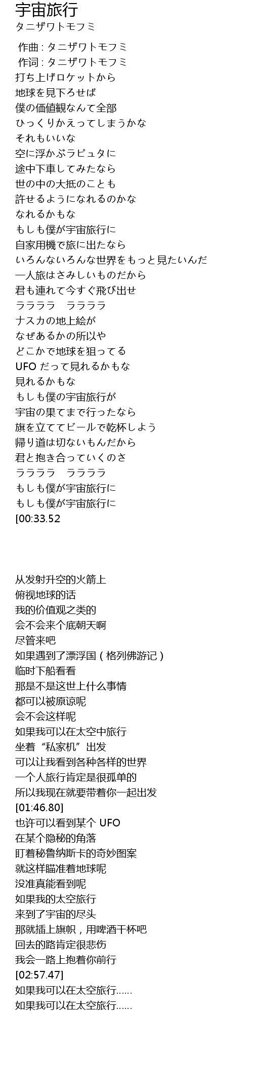 | [03:03.49] | もしも僕が宇宙旅行に |