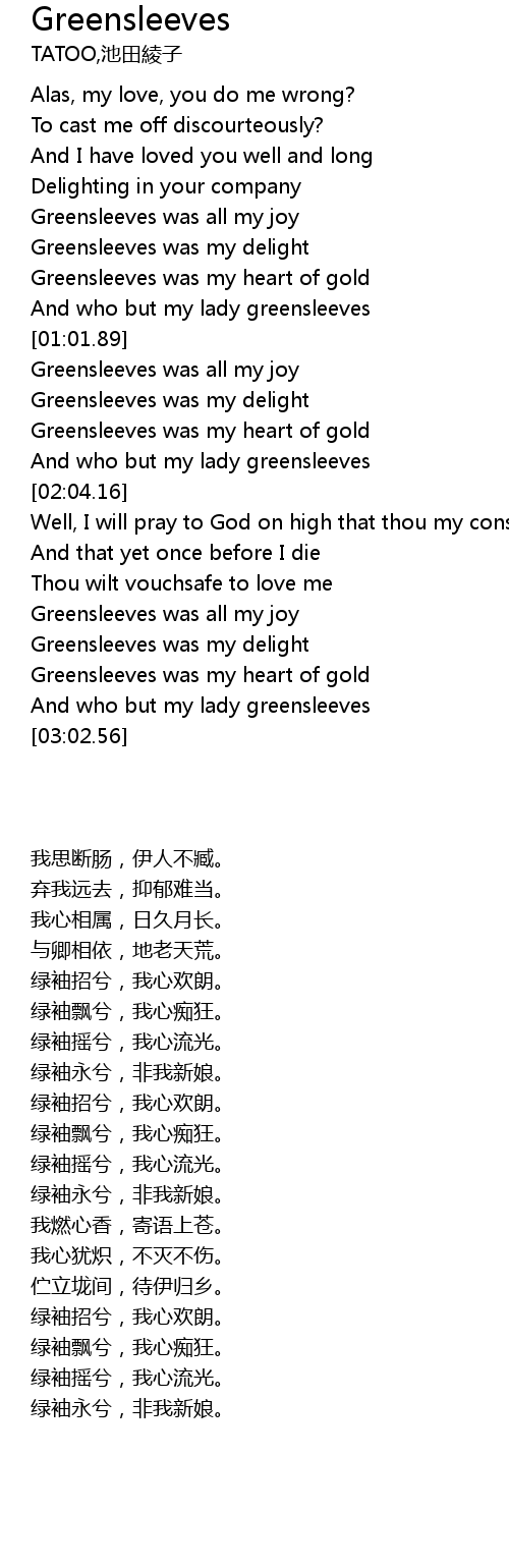 | [00:13.33] | Alas, my love, you do me wrong? |