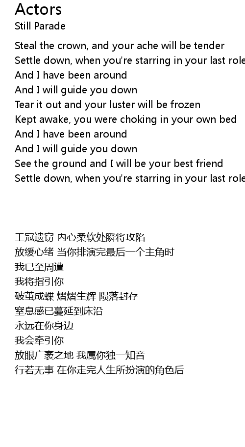 | [00:42.35] | Settle down, when you're starring in your last role |