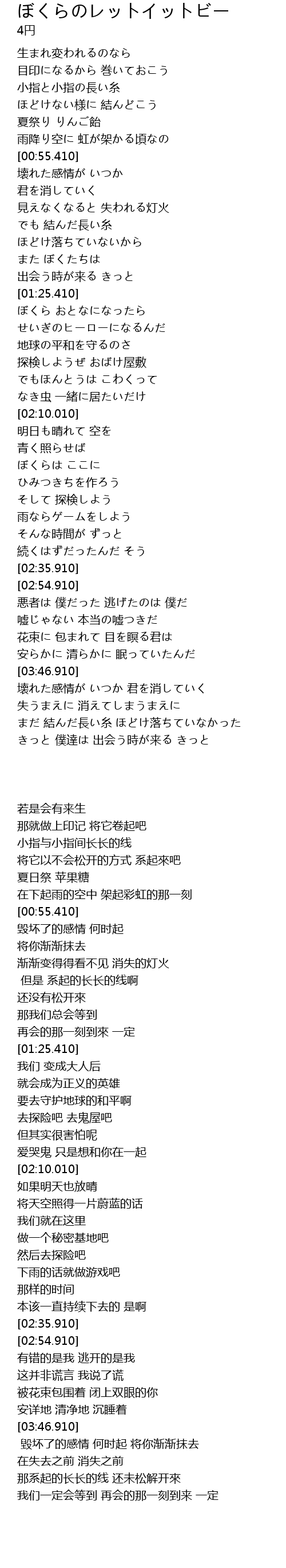 | [02:56.910] | 悪者は 僕だった 逃げたのは 僕だ |