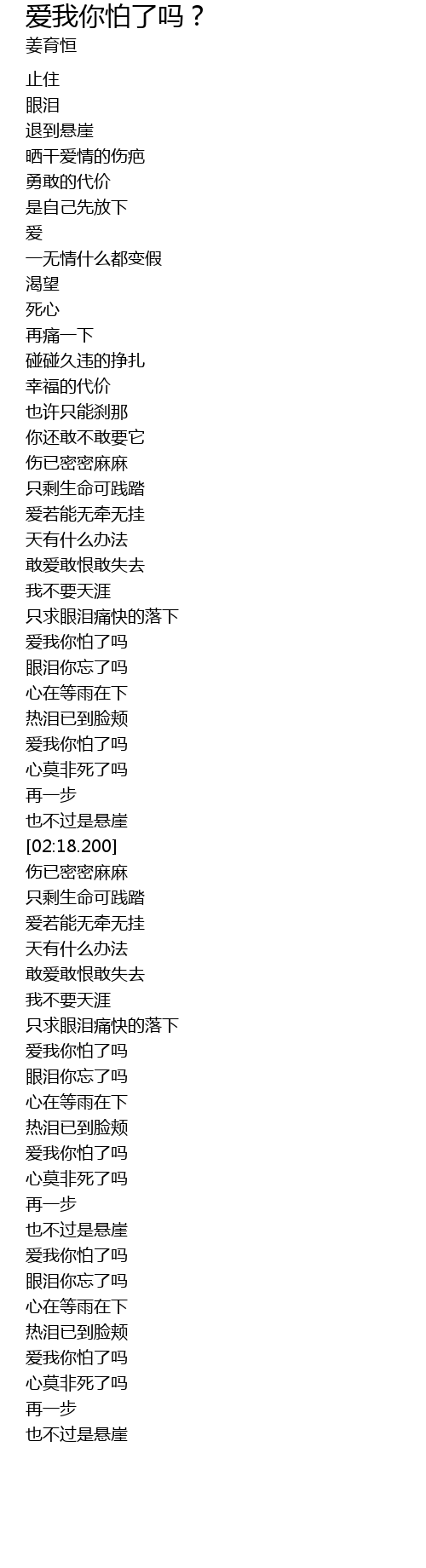 | [03:34.810] | ài wǒ nǐ pà le ma |