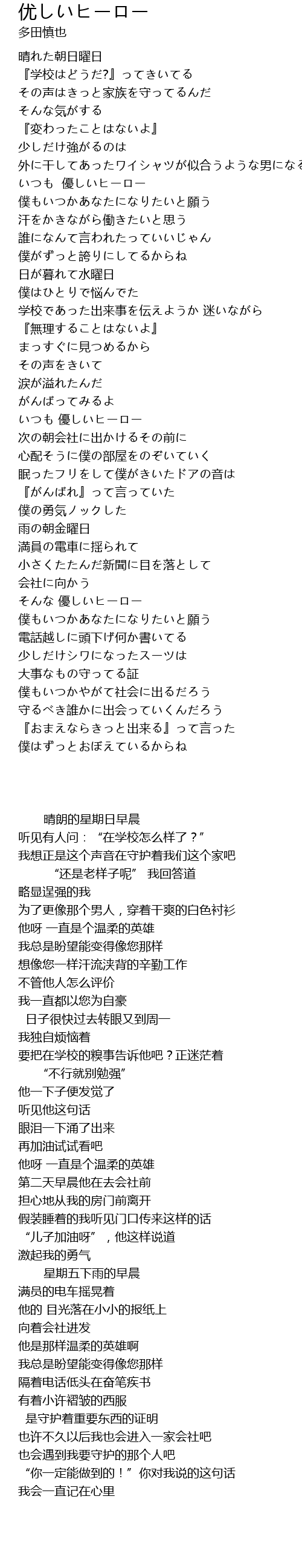 | [00:20.490] | その声はきっと家族を守ってるんだ そんな気がする |