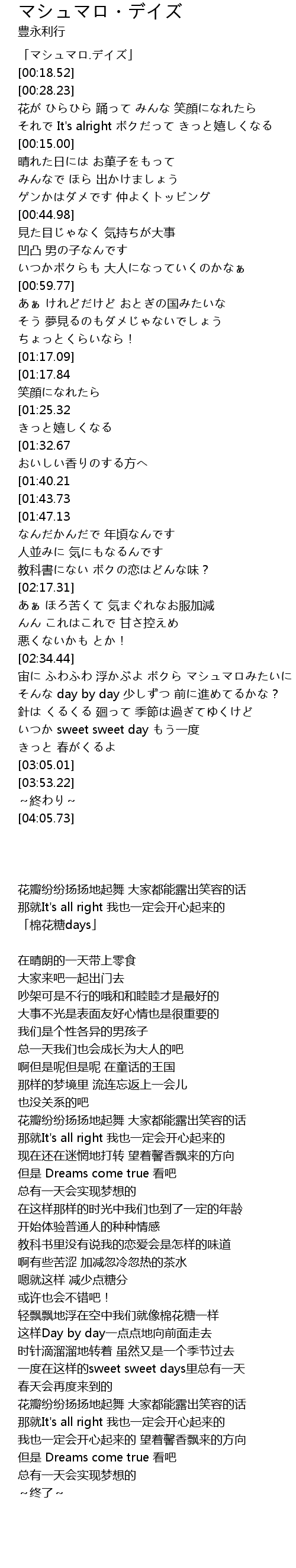 | [00:16.92] | 「マシュマロ.デイズ」 |