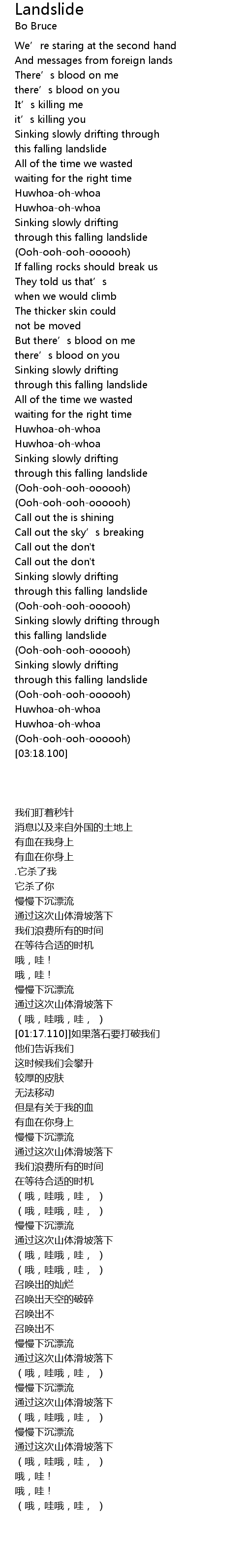 | [01:47.990] | through this falling landslide |
