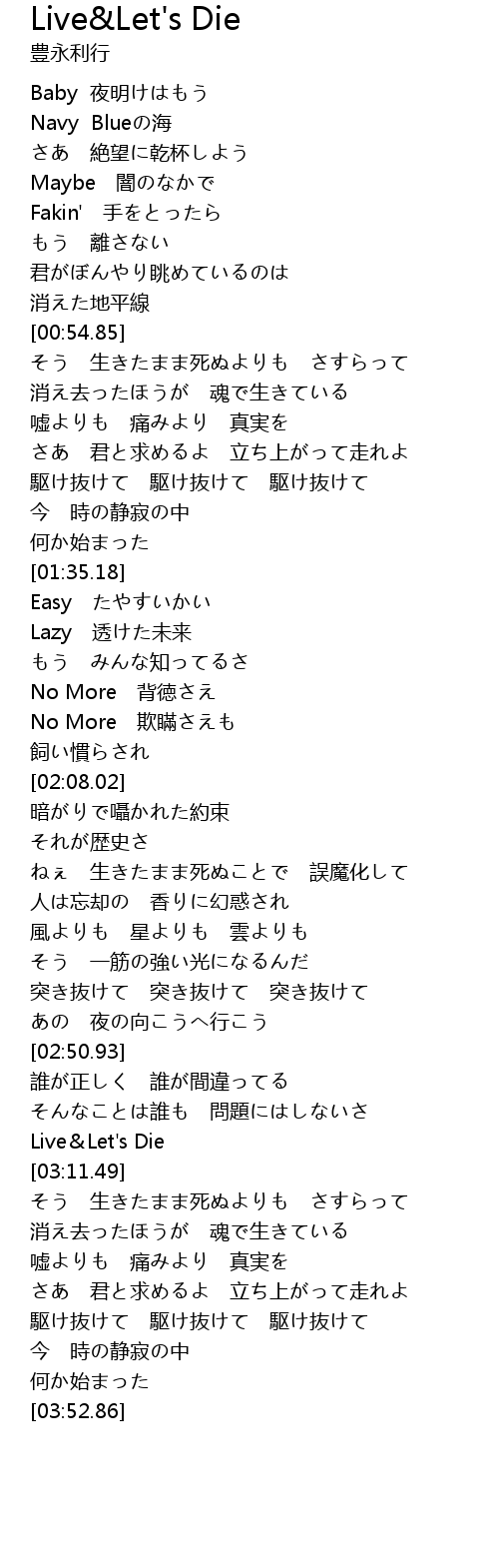 | [03:10.01] | Live&Let's Die |