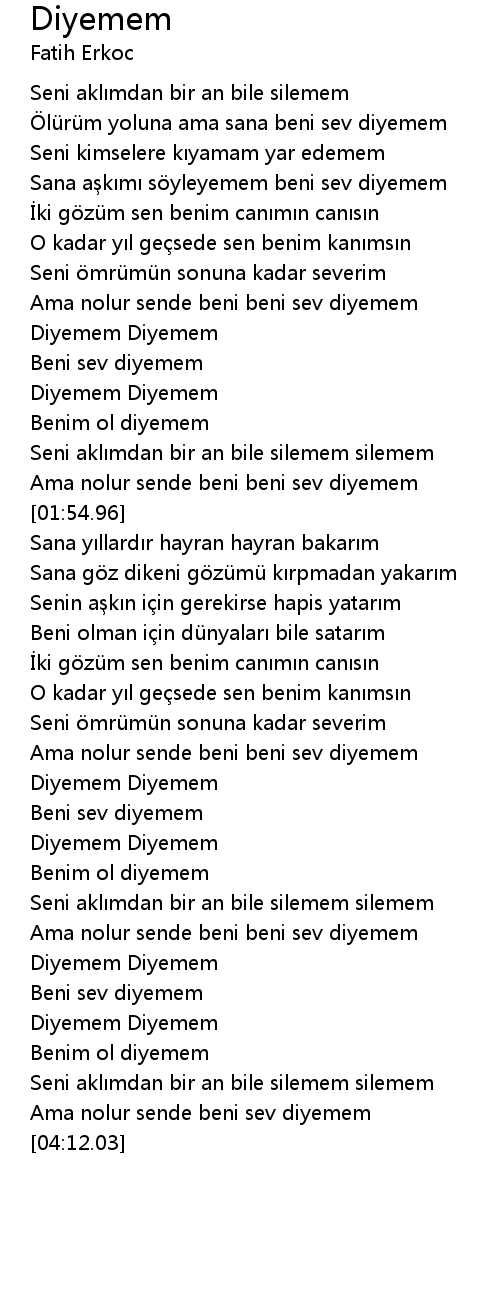 | [00:51.84] | Sana a k m s yleyemem beni sev diyemem |