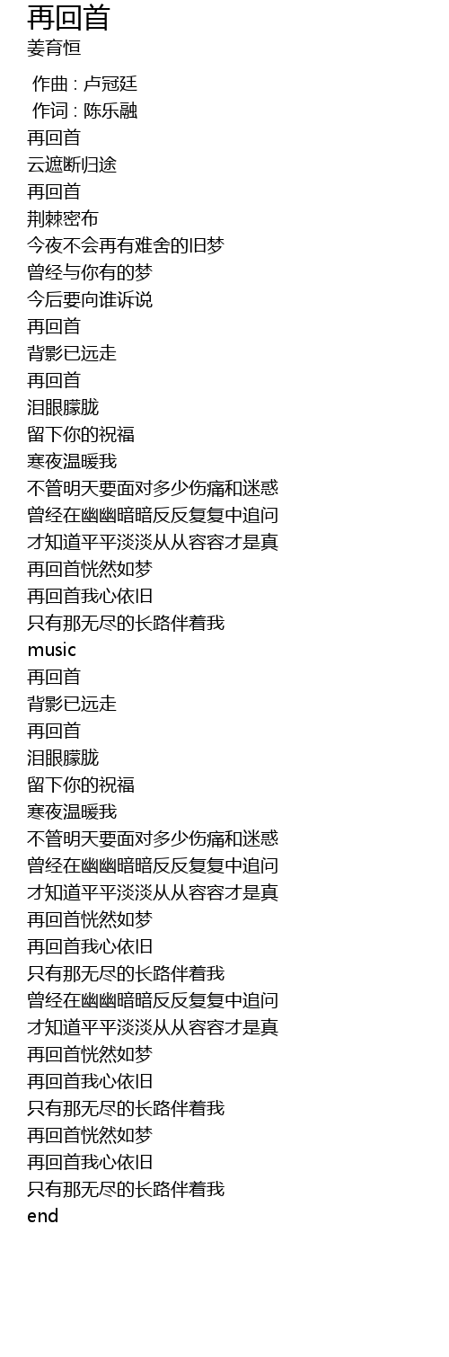 | [02:15.97] | 再回首 |