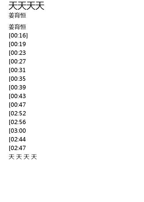 | [02:22][00:43] | tian tian tian tian, yi yang de tian tian |