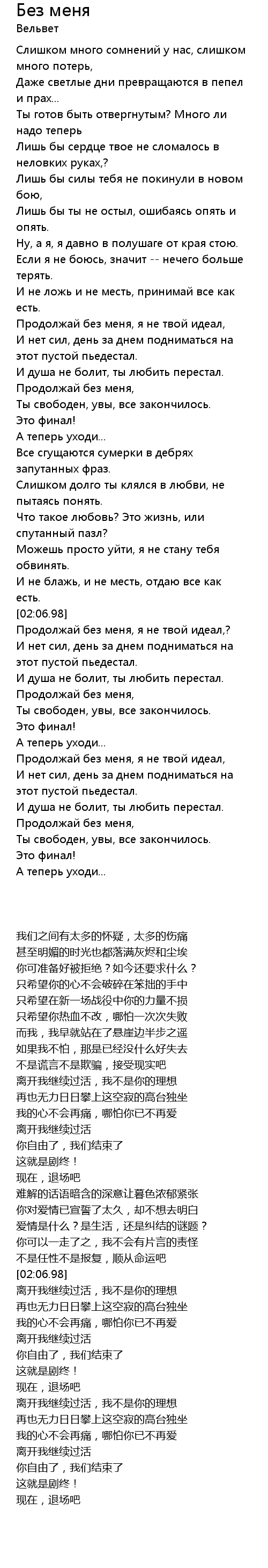Song Без меня