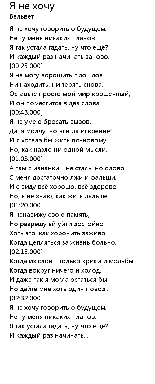Я не хочу  Lyrics