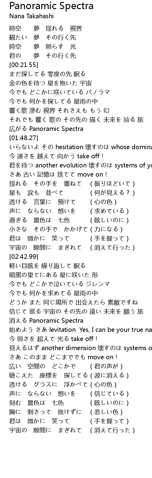 | [01:44.84] | 広がる Panoramic Spectra |