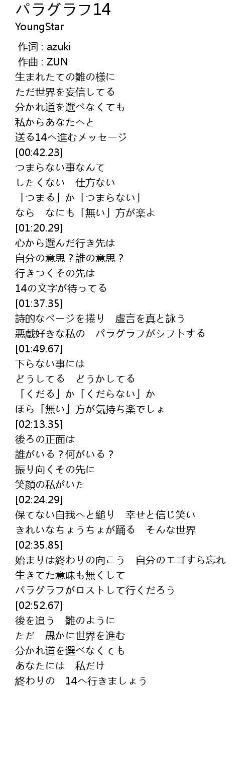 | [01:43.35] | 悪戯好きな私の パラグラフがシフトする |