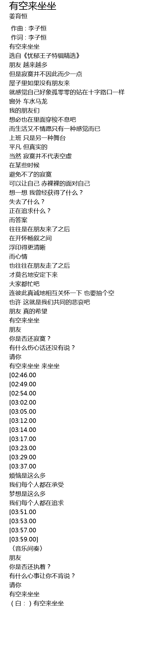 | [02:39.00] | 有空来坐坐 来坐坐 |