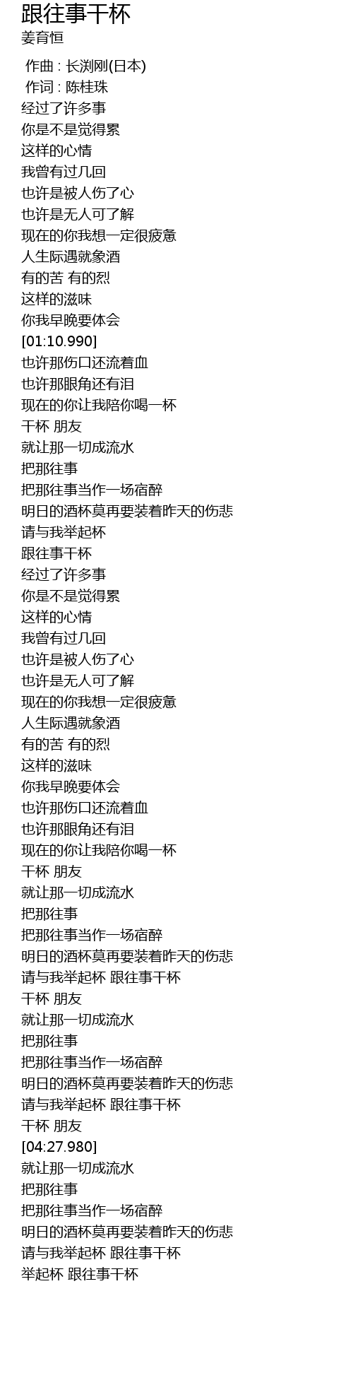 | [04:46.550] | 请与我举起杯 跟往事干杯 |