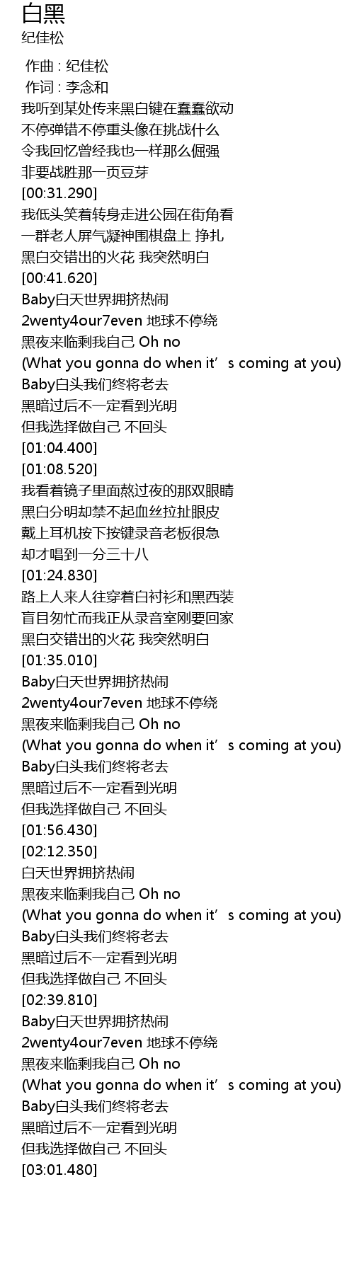 | [02:51.090] | Baby白头我们终将老去 |