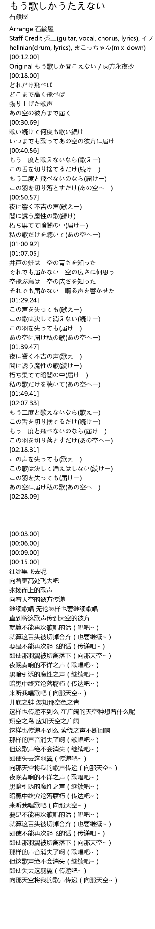 | [02:20.77] | この歌は決して消えはしない(続けー) |