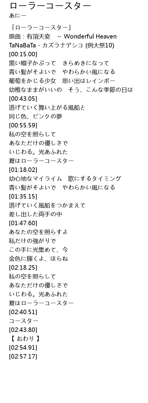 | [00:03.00] | 「ローラーコースター」 |