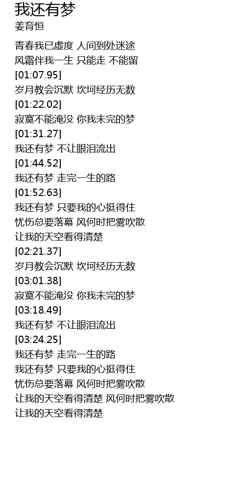 | [01:46.77] | 我还有梦 走完一生的路 |