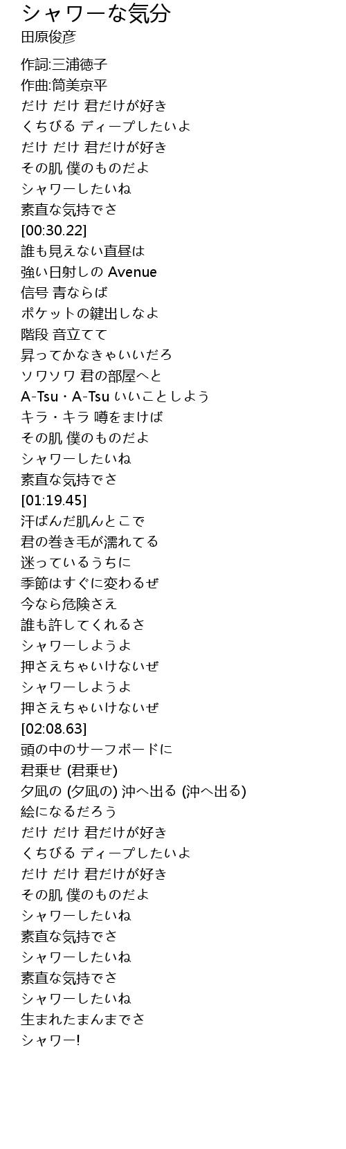 | [02:01.34] | シャワーしようよ |